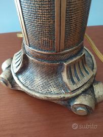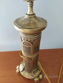 lampada antica in legno intarsiato e ottone