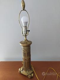 Lampada antica WILDWOOD azienda prestigiosa di fama Internazionale La lampada ha un corpo di forma cilindrica in legno intarsiato a mano con foglia d'oro brunito, gli elementi accessori in ottone. Lampada UNICA perché creata su ordinazione. Unica nel suo genere e oggetto d'arredo raffinato e da intenditori. Possibilità di acquistare la coppia di lampade. Completa la lampada un paralume colore écru, e realizzato dalla stessa casa di produzione. Lampada che non può mancare in case con arredamento classico, ma di qualità più che eccellente.