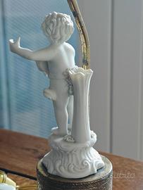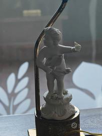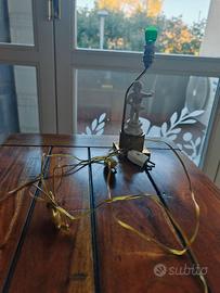 Lampada antica ma rimessa a nuovo con impianto elettrico aggiornato, e lampadina verde. Figura di un bambino con violino (rotto, vedi foto).