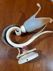 Vendo lampada da muro usata pochissimo come nuova, oggetto di artigianato in ferro battuto dipinto a mano, il portalampada è a fiore in pesante vetro sfumato . Preferibile ritiro in sede.