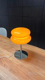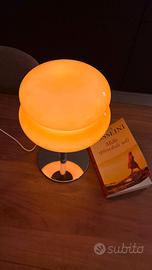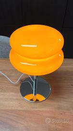 Tag: lampada vintage, lampada anni 70, lampada arancione, lampada design, space age, modernariato, vetro arancione, base cromata, arredamento retrò, lampada da tavolo.