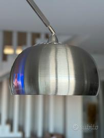 Lampada arco classica a da salotto. Elegante, funzionale, arreda ogni tipologia di ambiente con discrezione e stile. Si abbina facilmente a qualsiasi mobile della casa: perfetta vicino al divano o al tavolo da pranzo in soggiorno. La base è in marmo bianco lo stelo è rettangolare fisso, la cupola è satinata e presenta una piccola imperfezione.