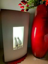Romantica lampada arredo bianca con 2 gattini nella finestrella frontale retroilluminata, illumina anche sopra, lamp. led per un consumo più basso, è perfettamente funzionante, in ottime condizioni