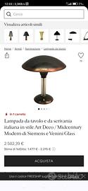 Lampada italiana da tavolo e da scrivania Art decò, Midcentury modern di Simens e Venini. In ordine Rara lampada da tavolo Art Déco in rame e vetro soffiato a mano, di Siemens e Venini.
