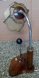 Vendo lampada art decò originale d'epoca, base sagomata e colonna esagonale in noce, braccio porta lampada e pallavolista in ottone cromato, coppetta porta lampada in bachelite.