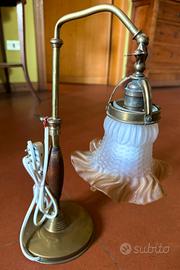Lampada Art Nouveau in ottone con paralume in vetro