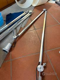 Lampada perfetta da esposizione. Lunghezza totale 200 cm snodabile in alluminio. Paralume in pergamena colore sabbia.