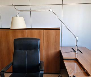 Lampada ARTEMIDE modello Tolomeo Mega versione da ufficio con attacco fisso a scrivania completo di vite (vedi foto 4), struttura allungabile in alluminio, paralume realizzato in carta pergamena con diametro max 32 cm, 150W max, (lampadina non inclusa). Lampada usata ma in condizioni ottime per un prodotto che ha avuto utilizzo limitato. Totalmente stesa in linea retta dim. 220 cm. Ritiro diretto zona Calderara (Bologna) o spedizione con costi da concordare.