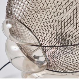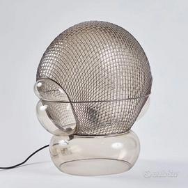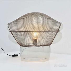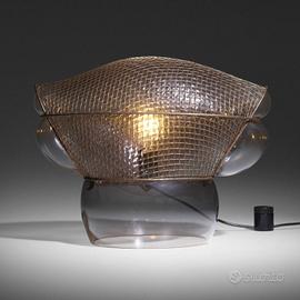 NUOVA IN VENDITA – VERSIONE DA TAVOLO, FINITURA IN VETRO SOFFIATO TRASPARENTE CON ARMATURA IN ACCIAIO LAMPADA DI DESIGN ICONICO E SCULTOREO FIRMATA GAE AULENTI. CORPO IN VETRO SOFFIATO A MANO INSERITO IN UNA STRUTTURA METALLICA ROMBOIDALE IRREGOLARE, CHE CREA UN EFFETTO “GABBIA” PREZIOSO E UN GIOCO DI RIFLESSI UNICO. LA LUCE VIENE FILTRATA E RIFRATTA ATTRAVERSO LA RETE METALLICA, GENERANDO UN’ILLUMINAZIONE INTENSA, ATMOSFERICA E SEMPRE DIFFERENTE. OGGETTO DI ALTO DESIGN, PERFETTO COME ELEMENTO DECORATIVO IMPORTANTE O PUNTO LUCE DI GRANDE IMPATTO. IDEALE PER SOGGIORNI, INGRESSI, ZONE LIVING E AMBIENTI DI RAPPRESENTANZA. SOLUZIONE LUMINOSA ARTISTICA, ICONICA E DI GRANDE VALORE ESTETICO E COLLEZIONISTICO.