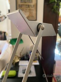 Lampada da tavolo Artemide Tizio Micro originale, uno dei grandi classici del design italiano, disegnata da Richard Sapper per Artemide. Si tratta della versione compatta della celebre Tizio: elegante, essenziale e perfetta per scrivania, studio, comodino o ambiente moderno. La struttura a bracci orientabili, priva di fili visibili, è il tratto distintivo di questo oggetto iconico, esposto anche nelle collezioni del MoMA di New York. La lampada è di colore grigio, con base e bracci regolabili che permettono di orientare la luce con grande precisione. Dispone di due livelli di intensità luminosa ed è ideale sia come luce da lavoro sia come elemento d’arredo. Condizioni: ottime, perfettamente funzionante. Presenta solo normali e lievi segni del tempo/utilizzo. Disponibile per visione e ritiro a mano.