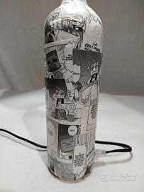 Lampada artigianale interamente realizzata a mano con la tecnica del decoupage. Una perfetta idea regalo per gli amanti di Minecraft.