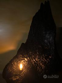 Questa non è solo una lampada: è un pezzo unico, una presenza carismatica che porta con sé il peso del fuoco e la bellezza della trasformazione. Perfetta per ambienti rustici, moderni o meditativi, è ideale per chi cerca oggetti con un’anima e una storia vera.