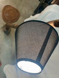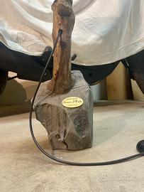 Lampada realizzata a mano. Unica nel suo genere. Base in pietra lavica, tronco d’albero e mensola. Bellissima!