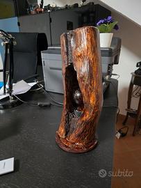 Lampada da tavolo fatta interamente a mano ricavata da un tronco scavato e lucidato a mano. pezzo unico