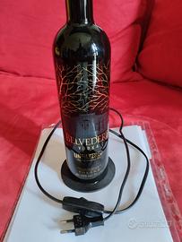 Nuova, mai usata. E' un prodotto per gli amanti dell'artigianato. Ha un' altezza di 56 cm, lunghezza del cavo elettrico 110cm e con base diametro 10 cm. Viene fornita con due lampadine, una bianca e una gialla. Si accende e si spegne con un interruttore classico come si vede da foto. E' fatta a mano dall'unione di un disco vinile (il quale si può girare dando l'inclinazione alla luce che si desidera) e da una bottiglia di vodka Belvedere. Il risultato è un pezzo raro!!!