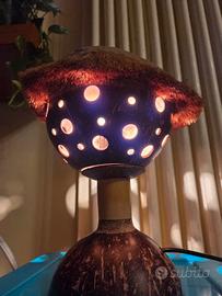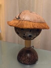 Vendesi lampada da tavolo artigianale realizzata con un guscio di noce di cocco.