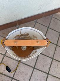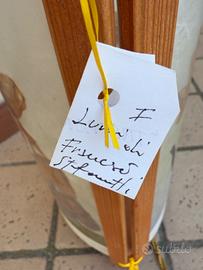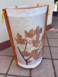 Vendo lampada artigianale realizzata con carta naturale decorata con foglie essiccate e struttura in legno.