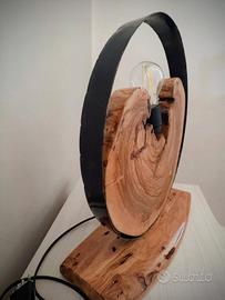 Lampada fatta a mano completamente in olivo/ulivo, struttura in ferro ricavata dal cerchio di una vecchia botte per vino, fantastica sia per ambienti rustici che moderni .. esemplare unico per la vostra casa, non ne troverete mai una uguale.