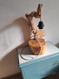 Splendida lampada da tavolo realizzata a mano con legno d'ulivo e finitura lucida che mette in risalto le venature. Il design rustico e minimalista si adatta perfettamente a qualsiasi ambiente: soggiorno, camera da letto o studio. Il cavo in tessuto intrecciato e la lampadina a filamento (inclusa) aggiungono un tocco caldo e accogliente.