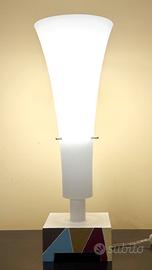 Il paralume in vetro proviene da una storica manifattura veneta di lampadari: elemento raro, oggi fuori produzione e non più reperibile sul mercato.