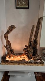 Vendo lampada fatta a mano, realizzata da artigiano Genovese utilizzando legni di deriva trattati con cera di carruba e olio di lino cotto, base con quarzi di sale e led.