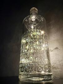 Lampada decorativa da tavolo, realizzata artigianalmente con contenitore in vetro originale e filo LED luminoso interno.