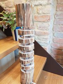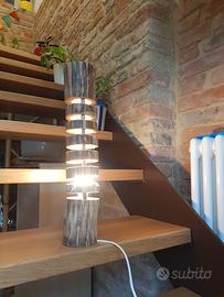 Lampada fatta a mano, ogni pezzo è unico ma similare a quella in foto. L'altezza è circa 45cm per un diametro di 8/10cm. Vendo già completa di filo con pulsante e lampadina a luce gialla. La lampada è realizzata in legno (tronchi derivanti da potature) e crea una luce soffusa molto bella in casa.