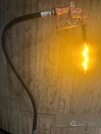 Trattasi di lampada auto costruita per ambienti da valorizzare , composta da basamento realizzato con misura campione per carburanti liquidi , struttura di con tubo acciaio rivestito , portalampada con pistola erogazione carburanti del anni 30 /40 spettacolare !!!! Alex 3393317902