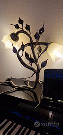 lampada artistica in ferro battuto lavorata e forgiata tutta a mano e a fuoco, nuova di mia produzione