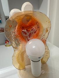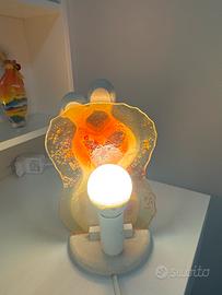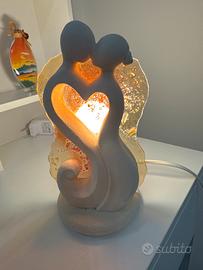 Vendo lampada decorativa a forma di coppia stilizzata, perfetta per creare un'atmosfera calda e romantica in camera da letto o in soggiorno. La scultura bianca rappresenta un abbraccio che forma un cuore centrale. Sul retro è presente un pannello in vetro lavorato con sfumature ambrate e rosse che, una volta accesa, diffonde una luce morbida e suggestiva. Base e scultura in materiale materico effetto pietra/ceramica opaca. Perfettamente funzionante e completa di cavo di alimentazione originale.