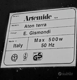 Lampada “Aton terra” del designer Ernesto Gismondi (Sanremo, 1931 – Milano, 2020), fondatore di Artemide. Colore nero, altezza cm. 190, base diametro cm.35. In ottimo stato, minimi segni di uso, perfettamente funzionante con dimmer per intensità luminosa regolabile, luce rotabile e regolabile in altezza.