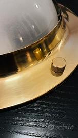 Il modello LSP6 “Tommy” rappresenta uno degli esempi più eleganti del design italiano Mid-Century Modern, caratterizzato da una struttura in ottone dorato e da un raffinato paralume in vetro soffiato.