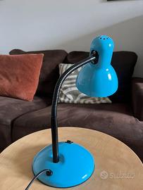 In stile vintage, lampada azzurra da tavolo in metallo funzionante.