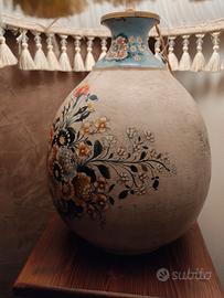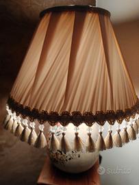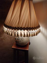 Lampada in tessuto in raso con frange e vaso dipinto a mano