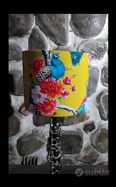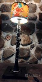 Bellissima lampada musicale realizzata utilizzando antico clarinetto in SIb,basamento in ferro e paralume artigianale con tessuto giapponese.