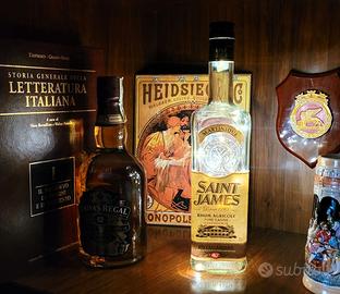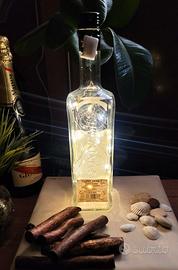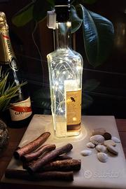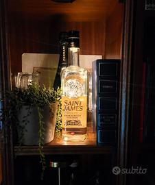 Lampada d'atmosfera/punto luce, bottiglia Saint James Rum Royal Ambré, Provenienza Martinique (vuota), è un pezzo unico per arredare e decorare il o la casa, l'angolo bar, il tavolo da cena, la libreria, il tavolo del giardino etc. Con striscia Led white 2 metri + seconda striscia led di scorta a tre modalità luce Alimentate da: 3 x batteria a bottone LR44 (Comprese)
