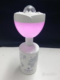 LAMPADA CON BOTTIGLIA GIN NORDES TUCH RICARICABILE TRAMITE CAVO USB IN DOTAZIONE, DIMMERABILE E CON EFFETTI LUCE COLORATI CAMBIABILI CON PULSANTE TOUCH O O IN AUTOMATICO