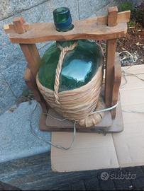 vendo vecchissima lampada bottiglia in legno e vetro basculante funzionante