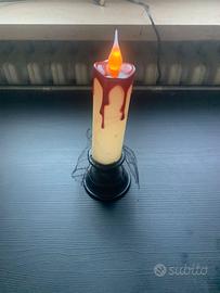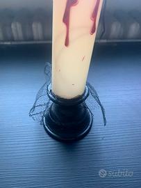Vendo lampada horror a forma di candela con stoppino elettrico che si accende dal pratico bottone che si trova sul fondo. La lampada è a batteria ed ha il pulsante on off per l'accensione dello stoppino. Condizioni pari al nuovo, spedisco ovunque.