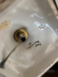 lampada in stile barocco, con paralume e impianto elettrico (portalampada, spina e interruttore) . Colore rosa con rifiniture oro, paralume bianco. Altezza 50 cm, diametro paralume 25 cm. Adattabili a vari stili, dal vintage al moderno. Lampadina a luce calda inclusa