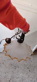 lampadario a sospensione con paralume in vetro opalino bianco con bordo ondulato color ambra o oro. si presenta proprio come in foto con una piccola scheggiatura, per info contattare