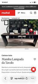 Vendo splendida lampada da tavolo o ingresso marca Cattelan Italia modello Mamba, articolo nuovo mai usato, ancora imballato nella propria scatola. Il prezzo di listino è di circa 700 euro, vendo a 200 euro trattabili per inutilizzo.