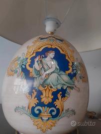 Bellissima lampada da tavolo in pregiata maiolica di Castelli d'Abruzzo, realizzata e decorata interamente a mano dalla storica manifattura Latorraca. L'oggetto presenta una raffinata decorazione classica nello stile tipico castellano: un medaglione centrale con figura femminile (Musa con lira) circondato da volute barocche nei toni del blu, giallo ocra e verde. Produttore: Latorraca (marchio presente sul fondo). Materiale: Ceramica smaltata (Maiolica). Stato: Ottime condizioni, ceramica integra senza sbeccature. Impianto elettrico funzionante. Completa di paralume originale dell'epoca. Nota importante sulla consegna: Data l'estrema fragilità dell'oggetto e il pregio della ceramica, non si effettua spedizione. L'oggetto è disponibile esclusivamente per il ritiro a mano a [Inserisci la tua città/zona], così da permettere all'acquirente di visionarne l'integrità dal vivo. Prezzo: 80 €