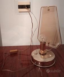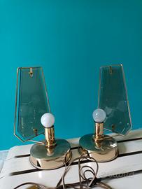 vendo coppia di lampade abat jour da appoggio per comodino o tavolo, ideale x camera da letto, vintage con base e supporto color ottone con vetri lavorati