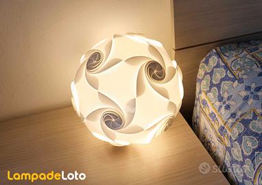 Lampadeloto: una lampada da appoggio per la camera da letto adatta come abatjur per il comodino o come paralume per il bagno, per il salotto, la sala, il salone o soggiorno. Adatta anche per la sala da pranzo, la cucina o la cameretta dei bambini. Anche come lampada da tavolo e scrivania, crea un’illuminazione dallo stile moderno e di design.