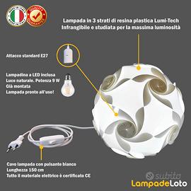 >> INSTALLAZIONE SEMPLICE: La lampada è consegnata GIA’ MONTATA con filo bianco da 150 cm, con singolo attacco E27