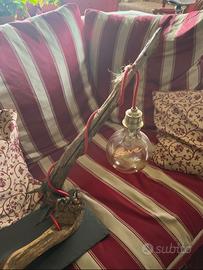 Lampada con lampadina Love. Legno e base in pietra. Come nuova.