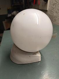 lampada da tavolo o da appoggio con paralume sferico in vetro opalino e base in ceramica .