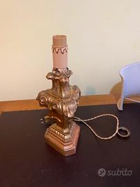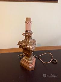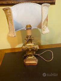 Lampada con paralume , montata in un condelabro primi 900 , con foglia di oro zecchino