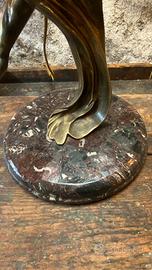 Bellussima scultura in bronzo con sovrastante lampada. Piedistallo in marmo. Diametro 40cm Altezza 80cm